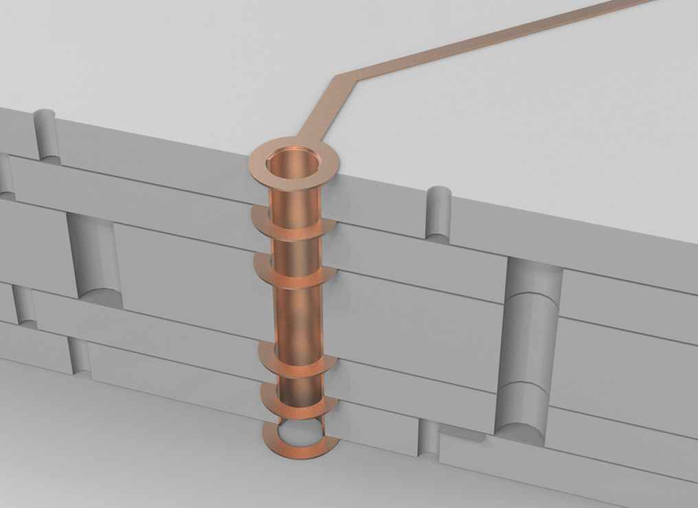 今天找了几张多层PCB电路板3D内部结构图,用立体图形展示各种叠层结构的PCB图内部架构。方便大家理解。
